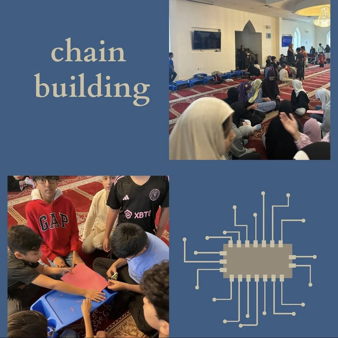 Mentoring 180+ students, in partnership with Aqsa Masjid and ICNA, on the foundations of building through a chain building activity!